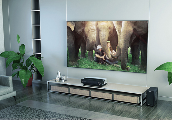 同时,激光电视虽然画面尺寸大,但搬运和安装起来都很方便,由于采用激光投影的方式,激光电视的体积相比液晶电视小了很多,激光电视自带自动对焦功能,所以完全不用担心移动后需要重新调焦的问题。