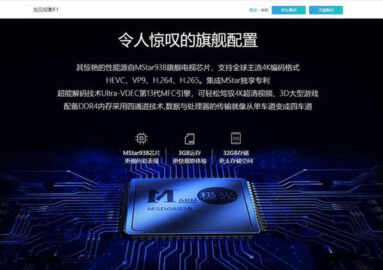当贝投影F1采用目前行业芯片最强的水准,我们可以参考。